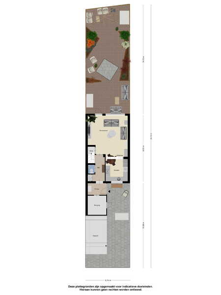 De ruime achtertuin is een echte hoogtepunt van de woning. Met een combinatie van een betegeld terras en groene beplanting, is dit de ideale plek om te ontspannen en te genieten van de buitenlucht. Er is voldoende ruimte voor een loungeset of een grote buitentafel, zodat u in de zomer optimaal kunt genieten van de tuin. De tuin is via de poort te betreden en te verlaten.