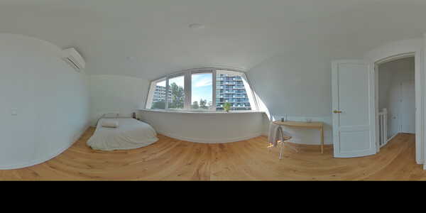 With another staircase, all in white this time, you can go to the top floor where you will find the 2 very spacious bedrooms. Since the bedroom at the back of the house has its own ensuite bathroom, which is just as luxurious as the "big" bathroom, you can really make this your own palace. Both bedrooms are air conditioned.