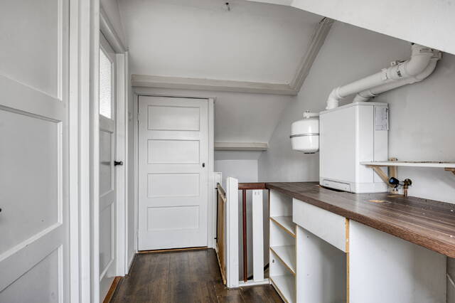 De woning beschikt over circa 102 m² gebruiksoppervlakte, verdeeld over drie volwaardige woonlagen. De zolder is dankzij de dakkapellen aan beide zijden opvallend ruim en licht en vormt een uitstekende extra slaapkamer, werkruimte of speelverdieping. De indeling is praktisch en biedt volop mogelijkheden om de woning verder naar eigen wens te moderniseren en in te richten.