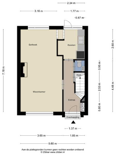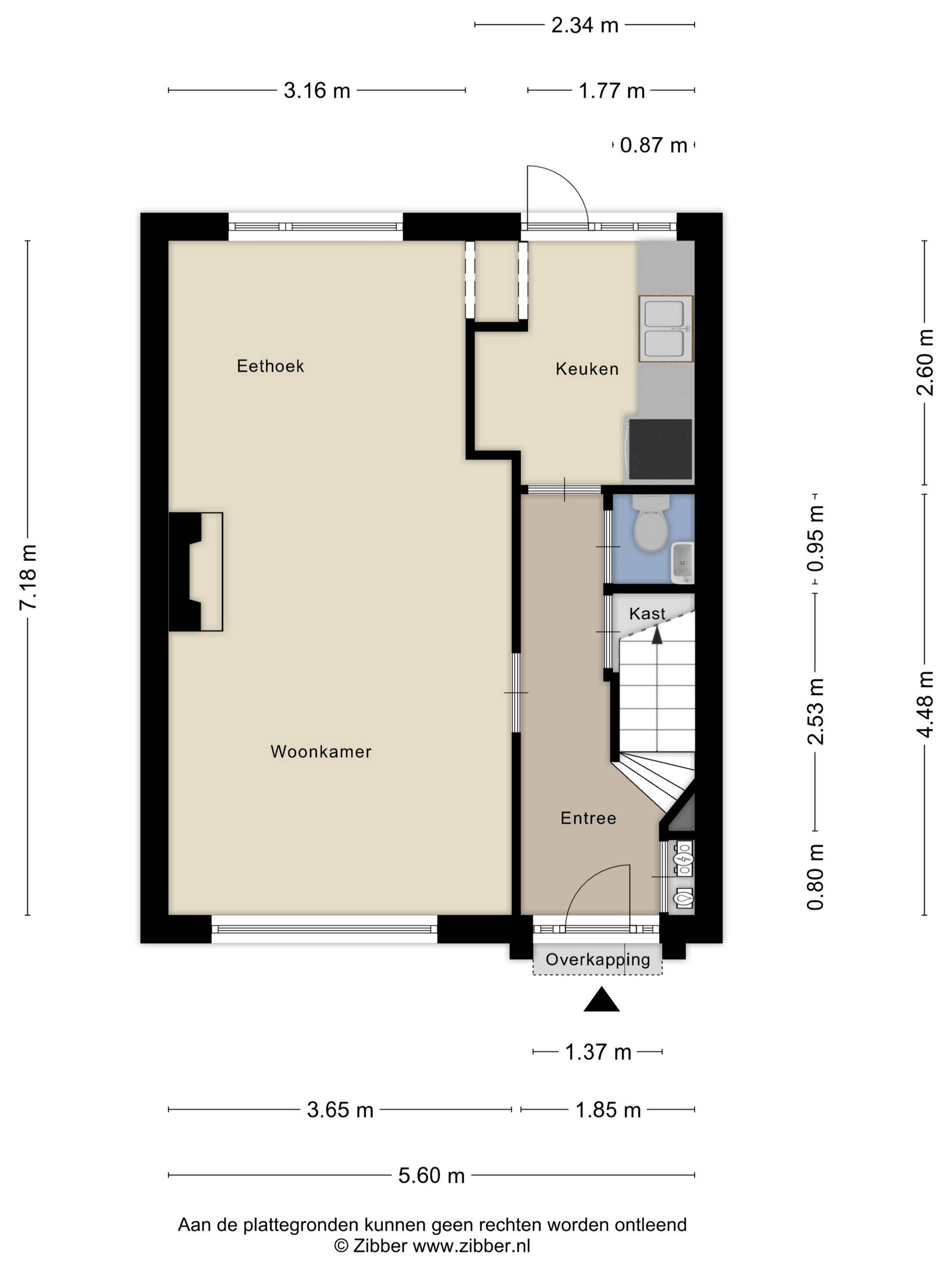 Begane grond: ruime hal, woonkamer met karakteristieke schouw, keuken aan de achterzijde met directe toegang tot de achtertuin en een apart toilet.