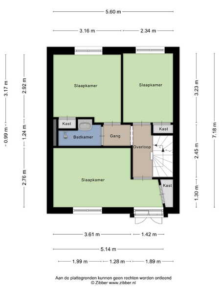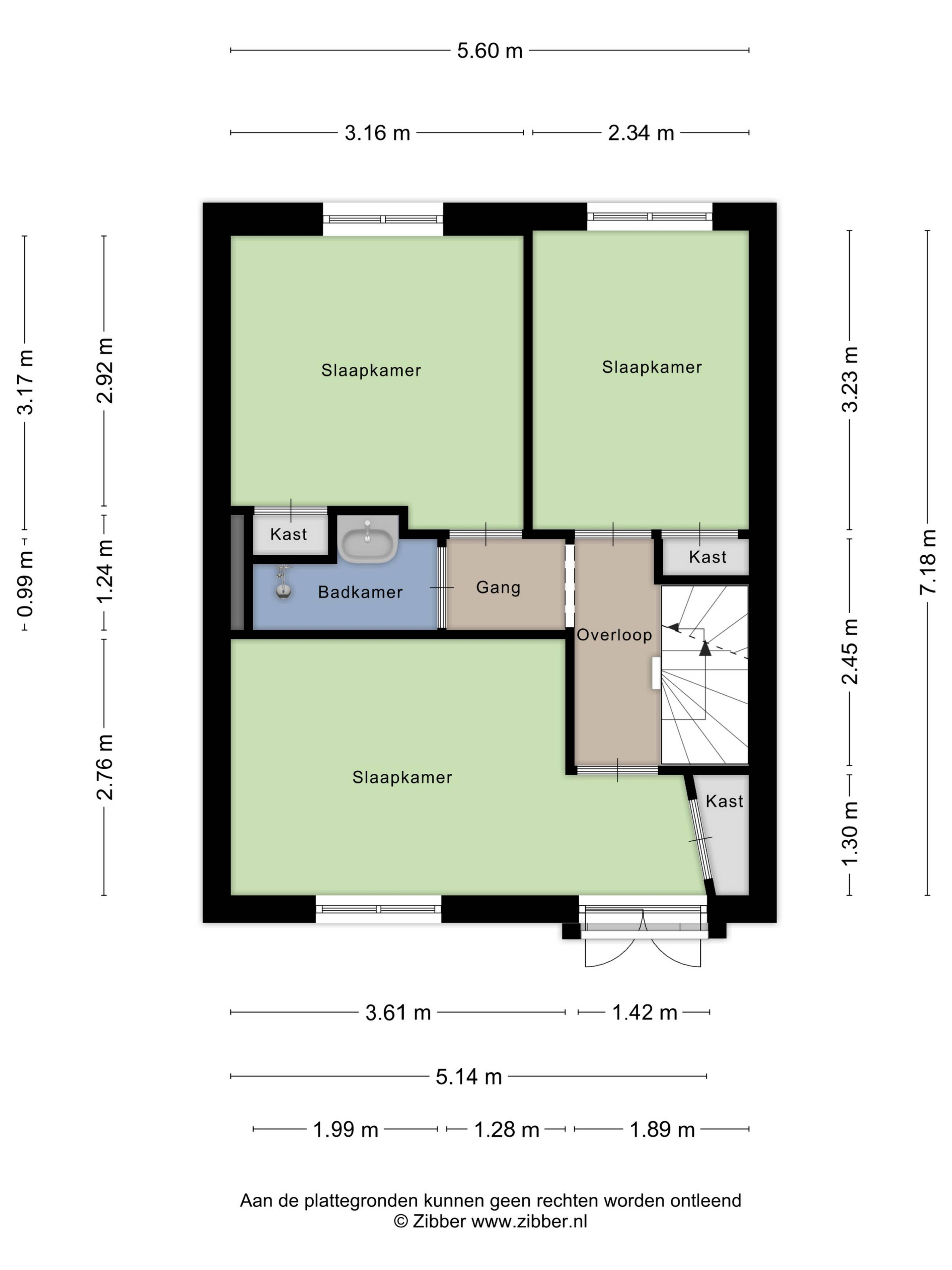 Eerste verdieping: drie slaapkamers en een badkamer.