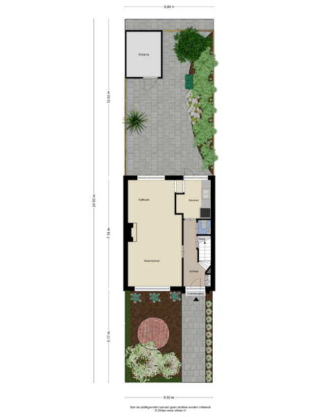 - Voor- en achtertuin met stenen berging ca. 7 m²
