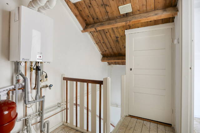 - Vier slaapkamers (drie op de eerste verdieping, één op de tweede verdieping)