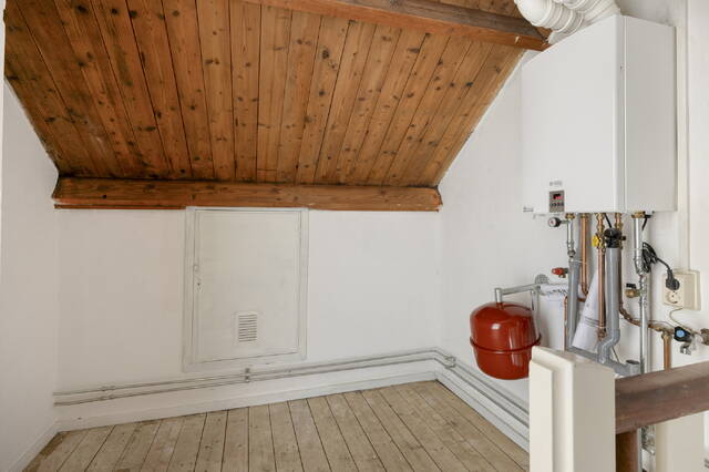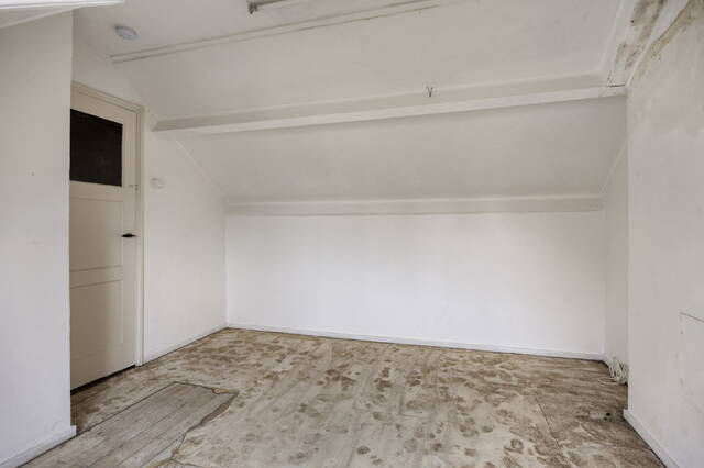 Tweede verdieping: vierde slaapkamer met houten dakbeschot — een ruimte met potentie.