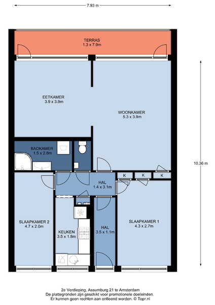 - Voorlaatste appartement op de galerij, dus weinig voorbijgangers