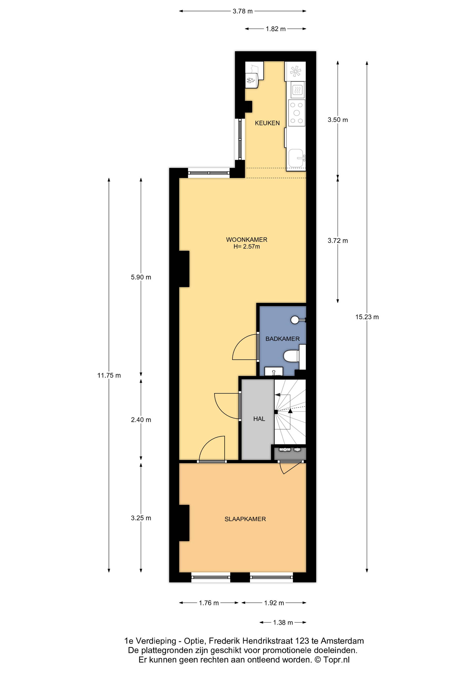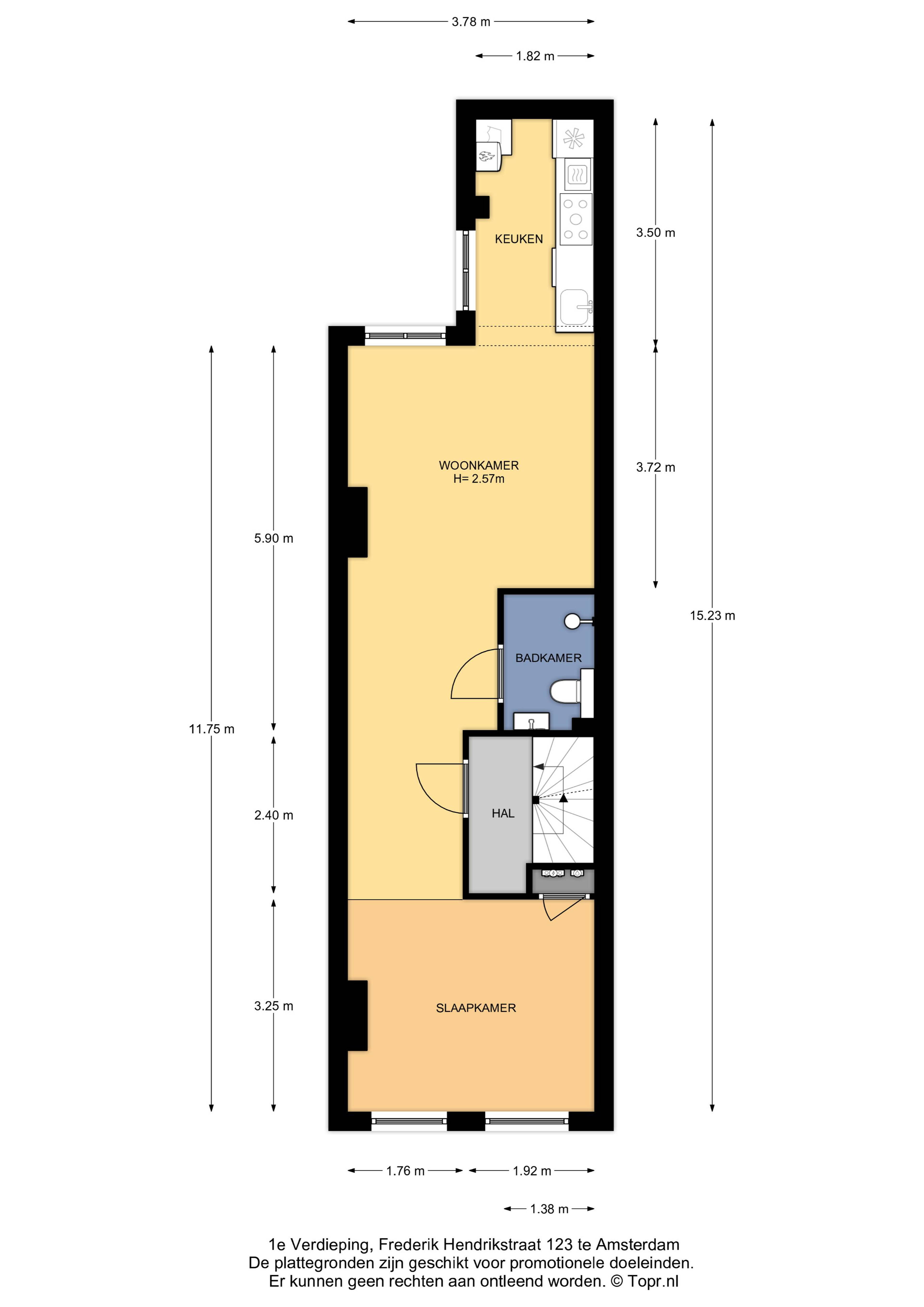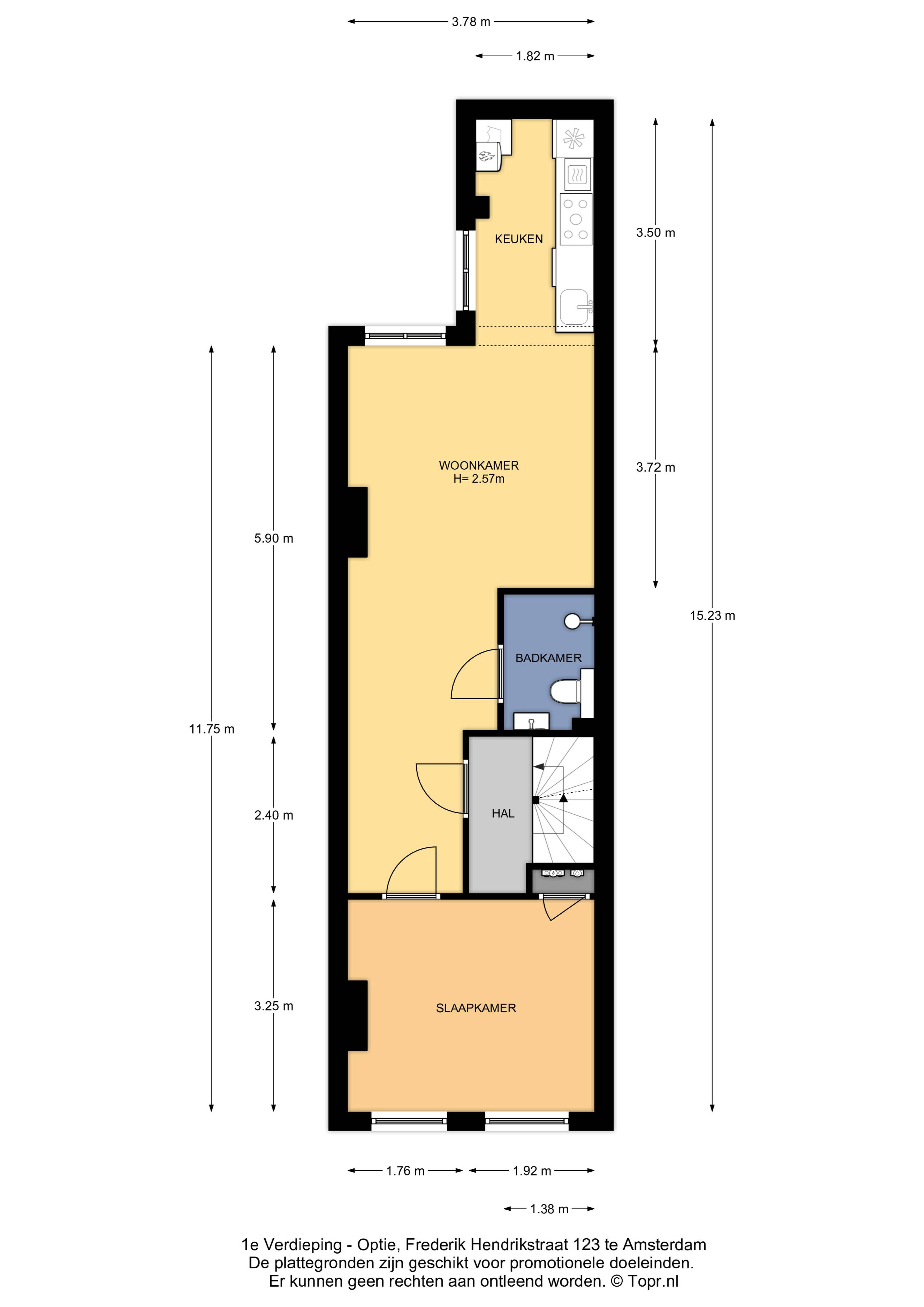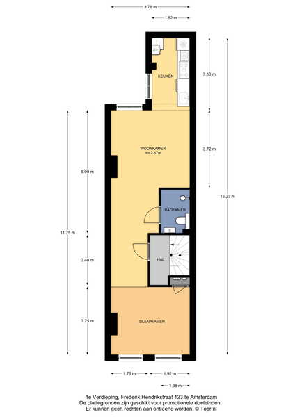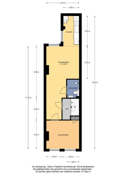 Op de eerste verdieping van een typisch Amsterdam's pand in de Frederik Hendrikbuurt, ingeklemd tussen Jordaan en de Staatsliedenbuurt, vindt u dit prettige appartement met veel licht. De woning kent een open en praktische indeling, waarbij geen ruimte verloren gaat aan onnodige hallen of kleine kamers zoals vaak het geval is in Amsterdamse woningen. Wanneer u behoefte heeft aan een separate slaapkamer en/of keuken kan dit gemakkelijk worden gerealiseerd middels extra binnenwanden, waarbij het geheel een ruimtelijke uitstraling zal behouden. Vanzelfsprekend is het geheel goed afgewerkt met o.a. een lichte laminaatvloer, strak afgewerkte wanden, een nette keuken en een bescheiden maar comfortabele badkamer met regendouche.