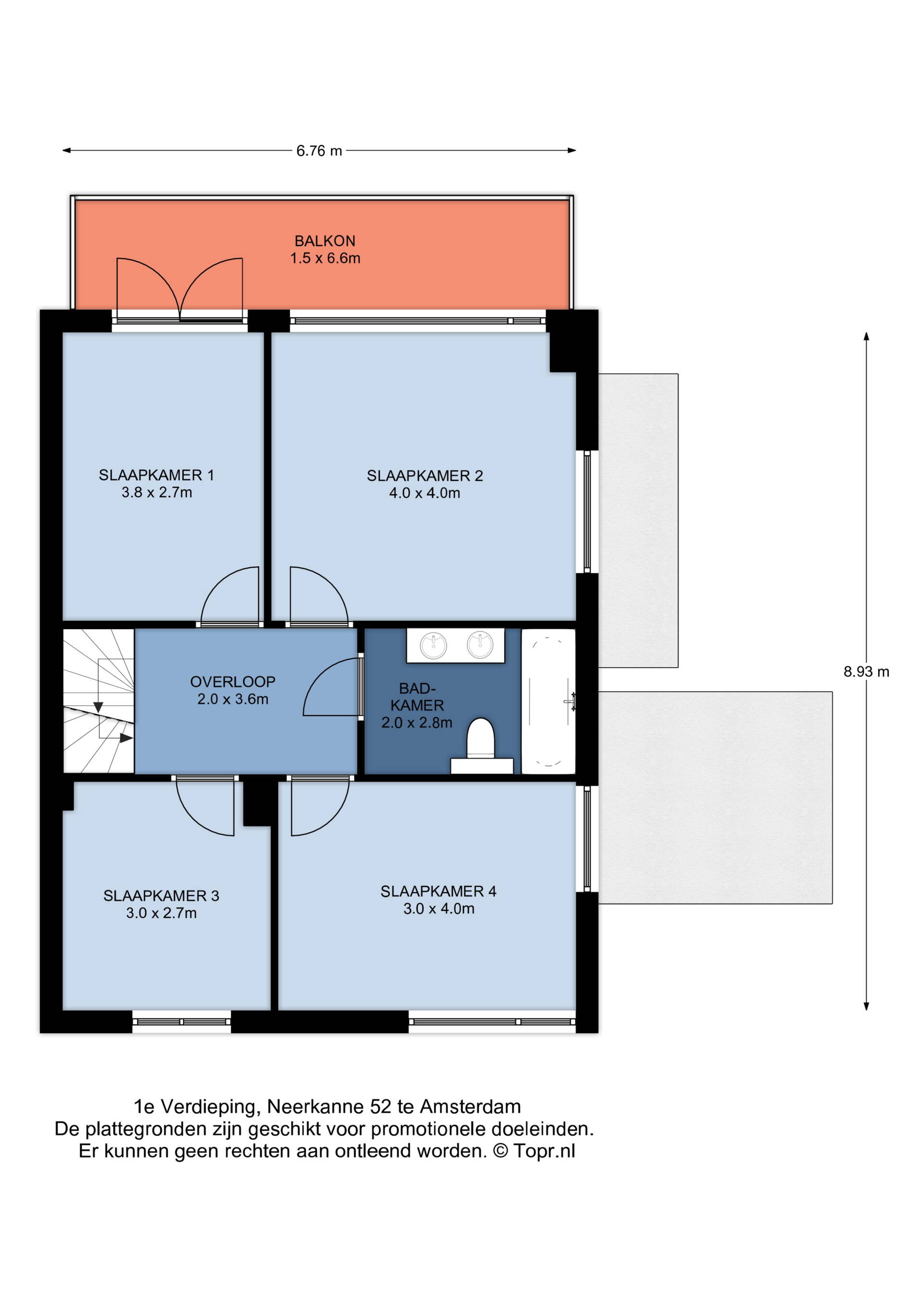 Eerste verdieping: 4 goed bemeten slaapkamers. 2 kamers hebben extra licht vanwege raam in zijgevel. 1 kamer aan de achterzijde (zuid) geeft u toegang tot een fijn balkon over de volle breedte van de woning. De vierde kamer ligt aan de voorkant. Alle kozijnen zijn van hout en voorzien van isolerende beglazing. De badkamer heeft een dubbele wastafel, bad met douche en een toilet.