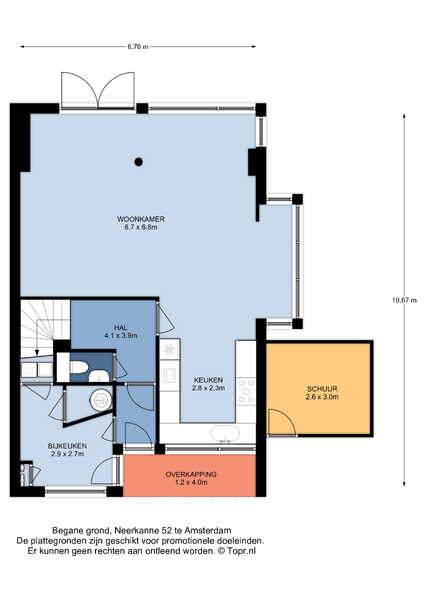 Indeling: Begane grond: Entree, hal, ruime woonkamer met massief houten vloer. De woning is aan de achterkant uitgebouwd en aan de zijkant bevindt zich een knusse erker. Door middel van openslaande deuren is er vanuit de woonkamer toegang tot de riante achtertuin. Nette keuken voorzien van diverse inbouwapparatuur. Toilet met fontein. Berging vanaf buiten en binnen bereikbaar met elektra, aansluitingen wasmachine en droger en inbouwkast. Tuin op het zuiden (achter) en westen (zijkant).
