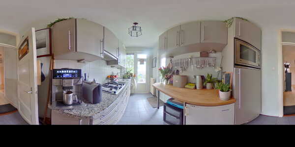 Located in the trendy and green part of the 'Rivierenbuurt' you will find this pleasant apartment. It is a nice and bright apartment with salient details such as panel doors, beautiful wooden floors, high ceilings and a fireplace in the large living room (dining and sitting area). This beautiful en-suite living room gives access to the remarkably large garden with 2 large patio doors. Here you have a lot of outdoor space with the option to relax and garden. The complete kitchen is in turn also in open contact with the garden.