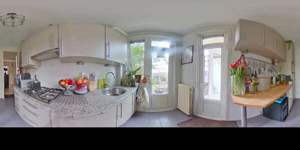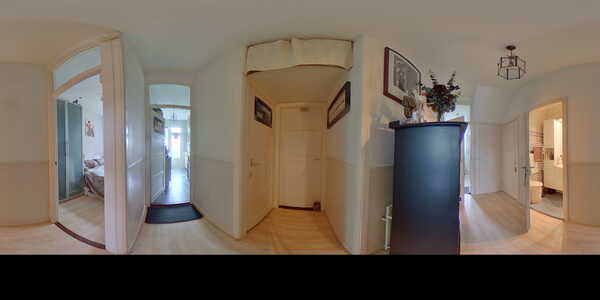 When entering the apartment you will immediately notice the high ceilings and panelled doors with flat panels. Through the beautiful entrance you reach the central hallway which gives access to the kitchen, the bathroom, the bedroom and the large en-suite living room (with dining and sitting areas).