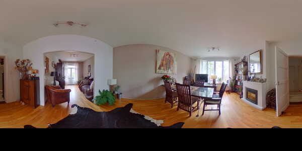 The 2 room en-suite receives lots of natural light on either side due to the large windows or the 2 patio doors. With the beautiful wooden floor and fireplace, this is a good place to be and entertain guests. The house could possibly be expanded with a second bedroom in the en suite living room.
