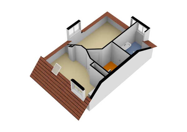 Via de tweede trap kom je op de overloop die toegang biedt tot beide slaapkamers en de badkamer. De slaapkamers zijn erg ruim van formaat en voelen door de grote ramen prettig aan. De badkamer is voorzien van een douche, wastafel, toilet en een aansluiting voor de wasmachine.