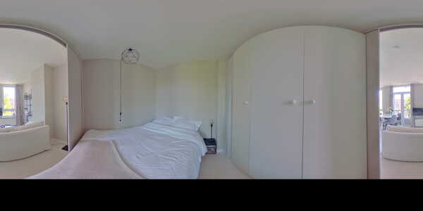Beyond the seating area you will find the bedroom. This can be kept open or closed thanks to the built-in sliding doors, making it almost a very luxurious bedstead. A double bed fits exactly in it. Besides the double bed there is also a closet wall in the bedroom with lots of closet space.