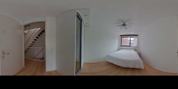 De vierde kamer vinden we 1 verdieping hoger middels een vaste trap. Deze riante slaapkamer is voorzien van ingebouwde kastruimte. Ook is er op deze verdieping plek voor een wasmachine en/of droger in de kleine wasruimte.
