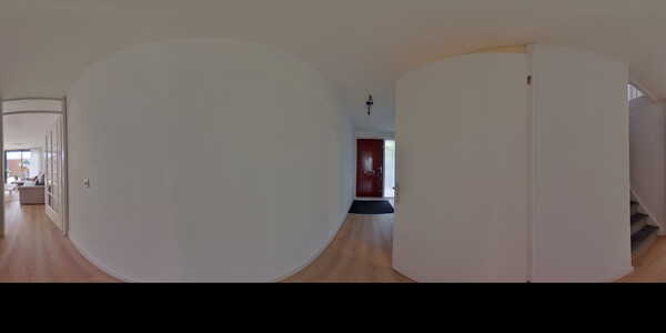 De gehele woning is heerlijk licht en goed onderhouden, zo ook de ontvangsthal. Van hieruit kan je naar het toilet, de trap naar boven pakken of naar de woonkamer. Als contrast op het wit is er in de woonkamer een prachtige zwarte schuifpui geïnstalleerd waarmee je het overdekte terras op kunt. Aan de voorzijde van het huis is de luxe open keuken gelegen, volledig voorzien van moderne inbouwapparatuur en stijlvol afgewerkt met een grijs/groen stenen werkblad.