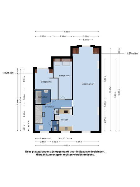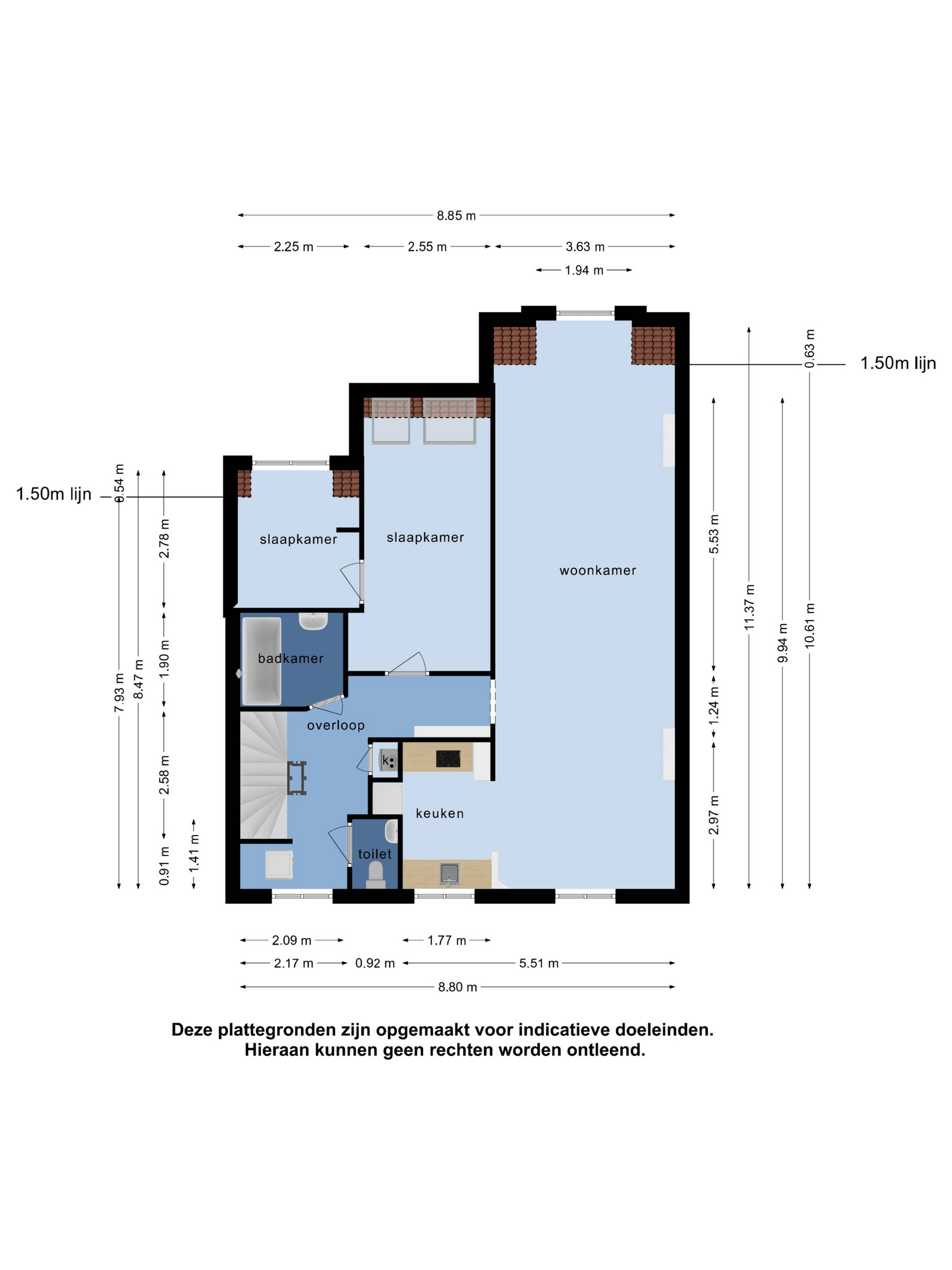 You enter the house through a neat entrance with stairs to the hall of the apartment. This hall gives you access to all rooms of the house: bedrooms, a separate toilet, bathroom and open living room. The beautiful open living room is characterized by lots of light, including skylights, beautiful floor and lots of living space and is taken care of down to the last detail.
