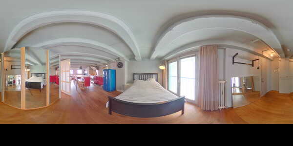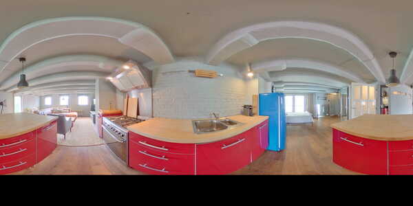 Je betreedt de woning via een gezamenlijke entree. Hier kom je uit in de loft, die als open concept living is ingericht. Het appartement straalt met zijn houten balkenplafond, bakstenen muur en karakteristieke raampjes direct authenticiteit uit. Je hebt hier genoeg plek voor een zitgedeelte, open keuken en slaapruimte.