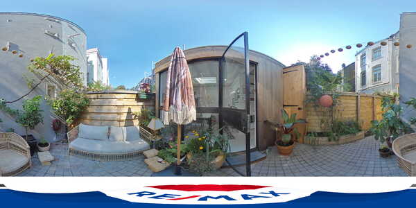 • The backyard seems to have picked up the atmosphere of the bathroom and is also very light and attractive. It is a sunny garden, and has a Mediterranean feel. The small tiles lead you around the bedroom to a nice sitting area where you will find a separate building between the fences and well-stocked planters. This garden studio of + - 8M2, fully insulated and equipped with a skylight for natural light and its own power points, can be turned into a great office/studio.