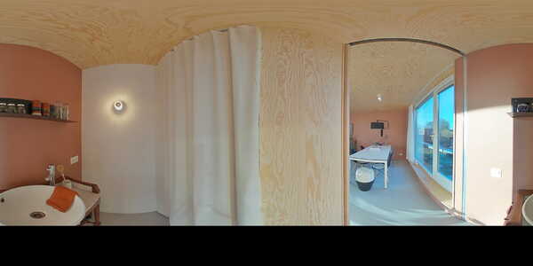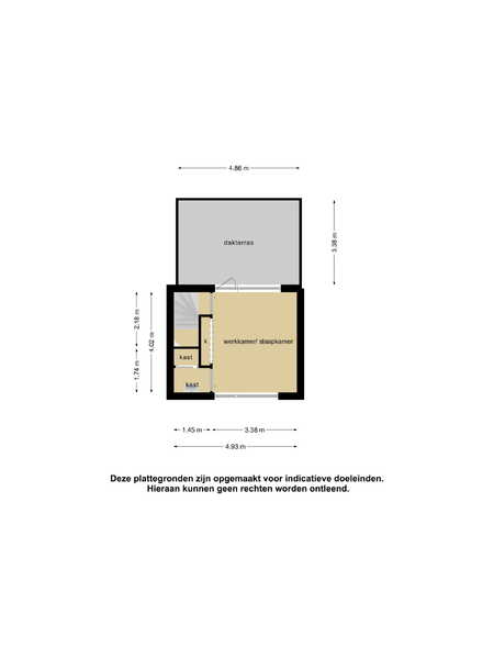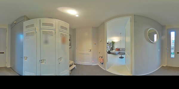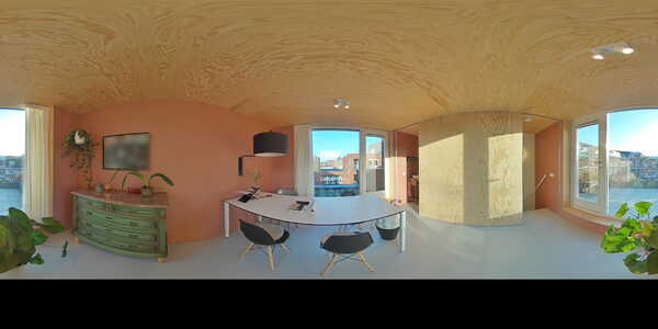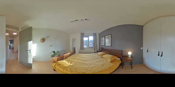 Nu wordt de ruimte gebruikt als werkruimte/studio, maar hier kan met gemak een slaapkamer van gemaakt worden (met tv en data aansluitingen reeds in de kastenwand). Ook hier is vloerverwarming onder de lichtgrijze linoleum vloer. Twee grote identieke raampartijen zorgen voor veel uitzicht. Er is zonnewering en zonnescreen. Maar omdat deze dakopbouw gerealiseerd is op een duurzame wijze met veel kwaliteit, is hier in ieder seizoen een perfect aangenaam binnenklimaat en temperatuur: zo zijn de wanden damp-open gebouwd, is het volledige dak extra geïsoleerd, is er triple glas met warmtewerend laag en zijn er 8 zonnepanelen (mei 2022).
