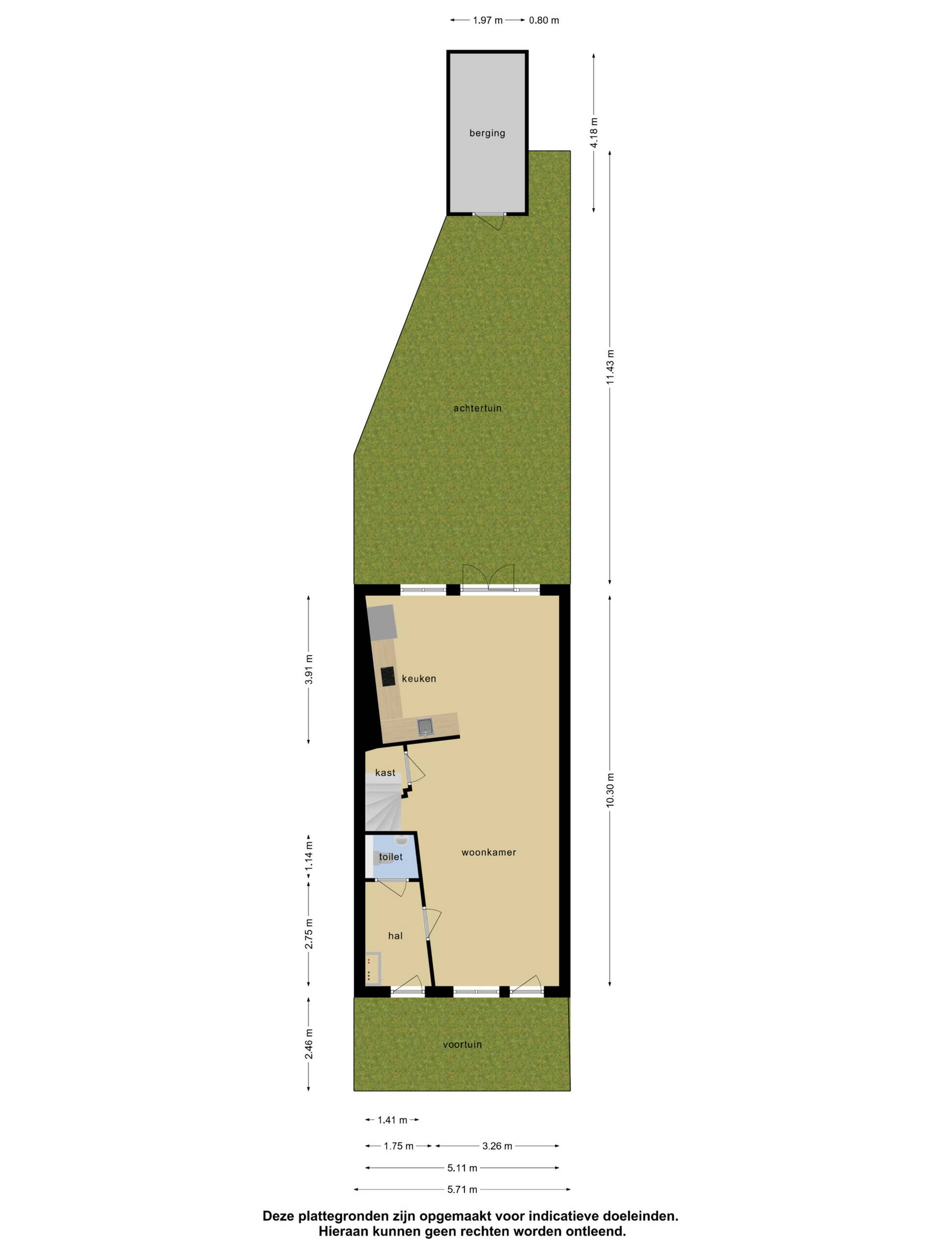 De voordeur is via een voortuin met tuinhek te betreden, van waaruit je binnenkomt in een hal met toegang tot ruim toilet en de woonkamer.
