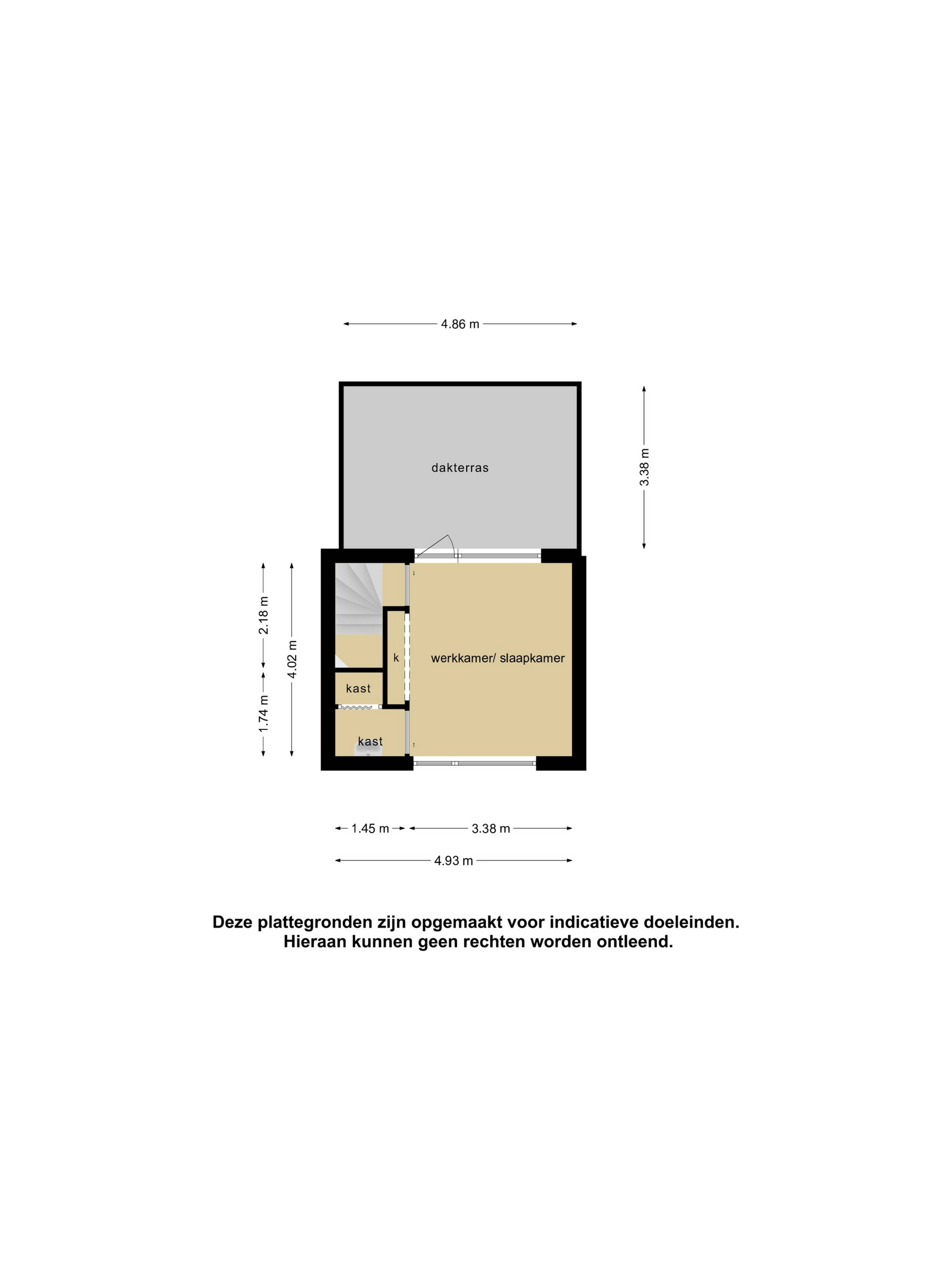 Nu wordt de ruimte gebruikt als werkruimte/studio, maar hier kan met gemak een slaapkamer van gemaakt worden (met tv en data aansluitingen reeds in de kastenwand). Ook hier is vloerverwarming onder de lichtgrijze linoleum vloer. Twee grote identieke raampartijen zorgen voor veel uitzicht. Er is zonnewering en zonnescreen. Maar omdat deze dakopbouw gerealiseerd is op een duurzame wijze met veel kwaliteit, is hier in ieder seizoen een perfect aangenaam binnenklimaat en temperatuur: zo zijn de wanden damp-open gebouwd, is het volledige dak extra geïsoleerd, is er triple glas met warmtewerend laag en zijn er 8 zonnepanelen (mei 2022).