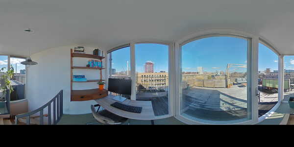 With the stairs you come out in the roof house which is now used as a home office. Here you have direct access to the large roof terrace. Work with the feeling of being outside and in the breaks relax on the roof terrace.