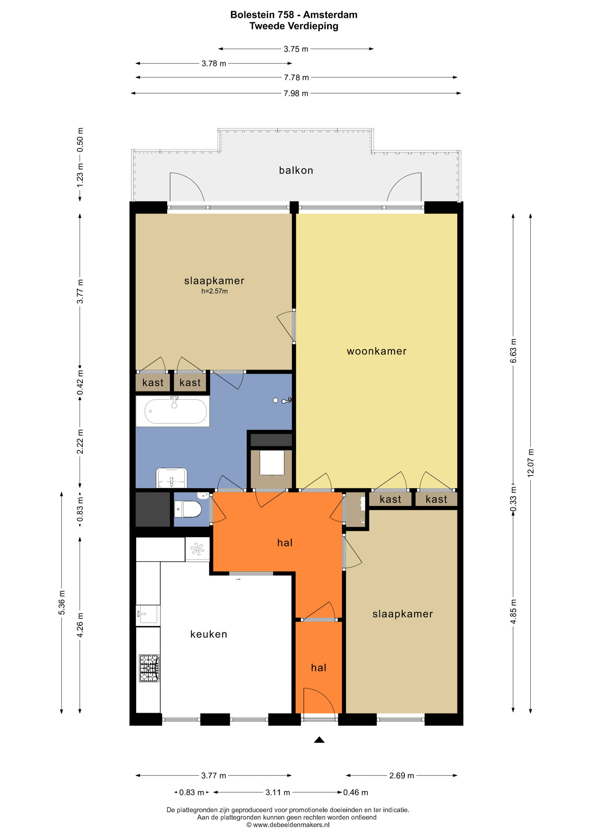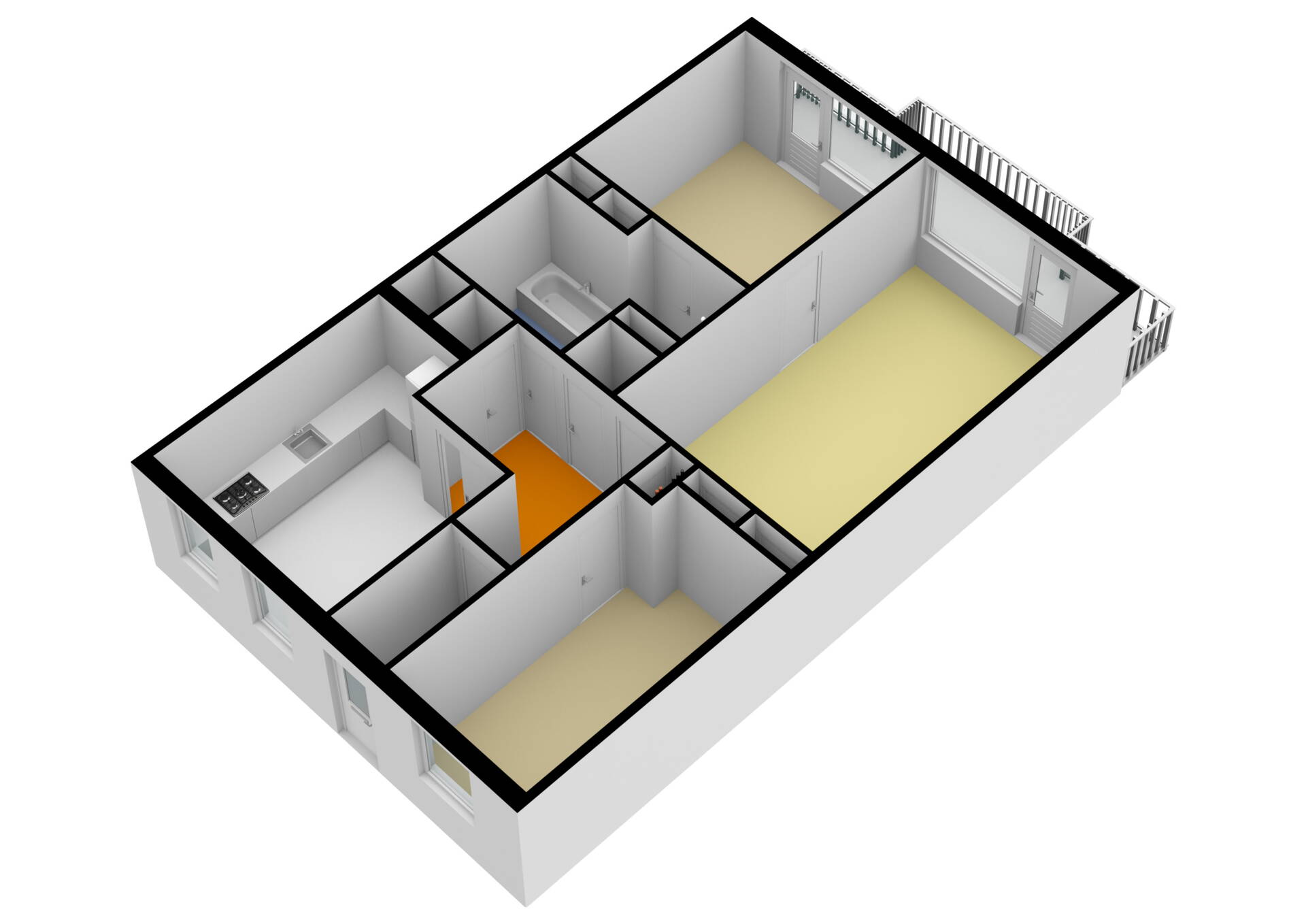 Via de entreehal loopt u naar het centrale punt in het appartement vanwaar toegang tot alle ruimtes; de lichte en ruime woonkamer gelegen op het westen met een balkon over de gehele breedte van de woning, 1 van de 2 ruime slaapkamers gelegen aan de galerijzijde, de royale eetkeuken voorzien van alle benodigde inbouwapparatuur, de aparte wc met fonteintje en de zeer complete badkamer met ligbad, inloopdouche en wastafelmeubel. Een apart kast met de wasmachineaansluiting. De tweede slaapkamer bevindt zich aan de westzijde en grenst aan de woonkamer.
