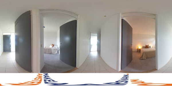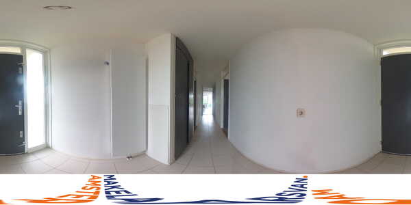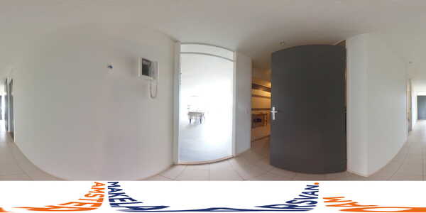 De toegang tot het appartement is via een centrale entree, waar je de keuze hebt tussen een vaste trap of een lift. Eenmaal boven kom je in een hal met een lichte tegelvloer die toegang biedt tot alle vertrekken in de woning.