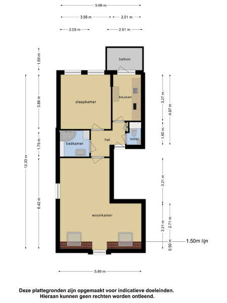 Bij binnenkomst in de hal krijg je toegang tot de diverse vertrekken van het appartement zoals een slaapkamer, separaat toilet, badkamer, keuken en woonkamer. Deze woonkamer, voorzien van een dakkapel, nodigt uit tot gezellige avonden met vrienden of familie. Of je nu een film wilt kijken, een boek leest of gezellig wilt dineren, alles is hier mogelijk. Daarnaast is er voldoende ruimte om een knusse zit- en eethoek te creëren.