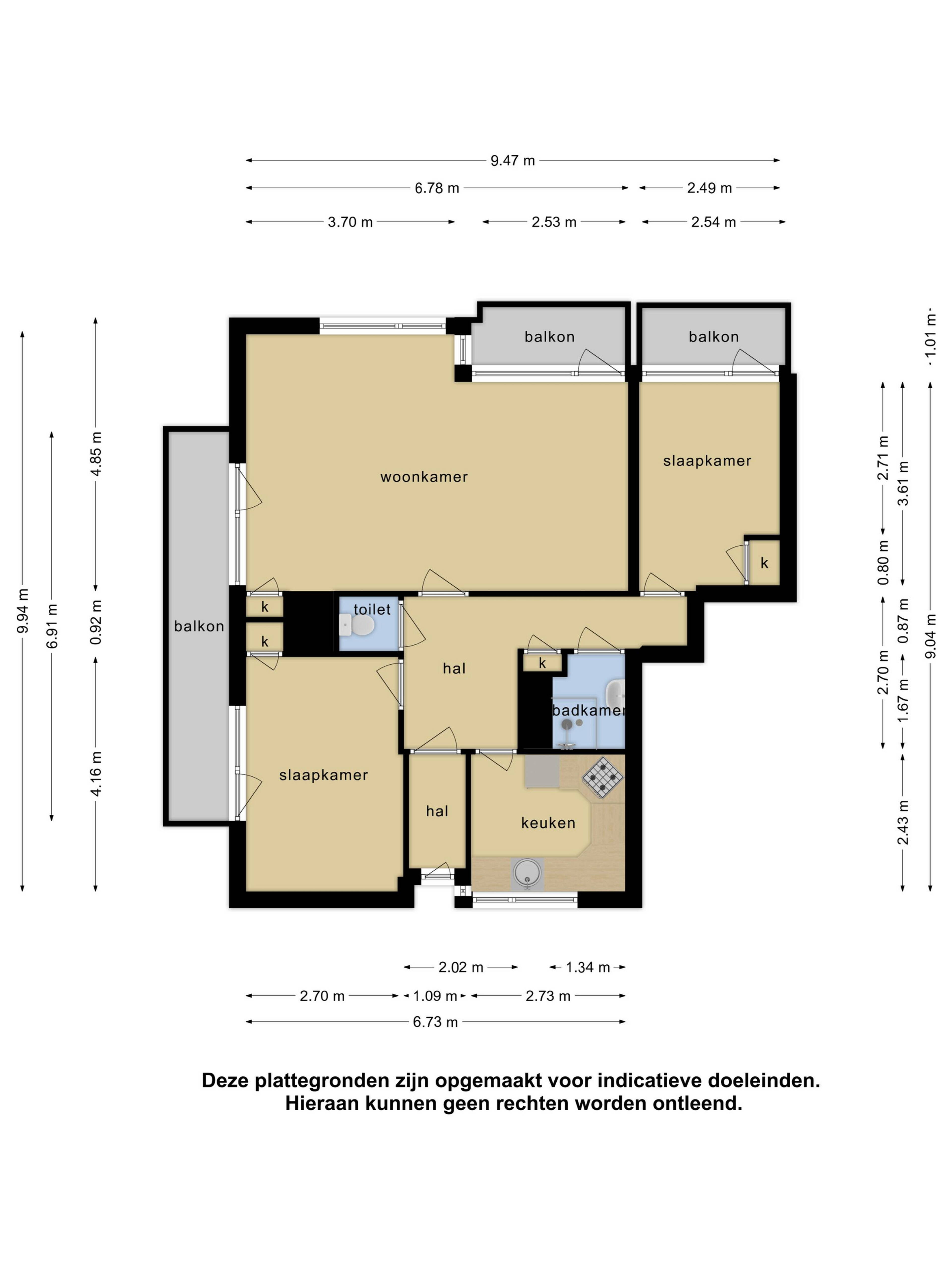 - Drie balkons; 1 op het Zuiden, 2 op het Zuid Westen
