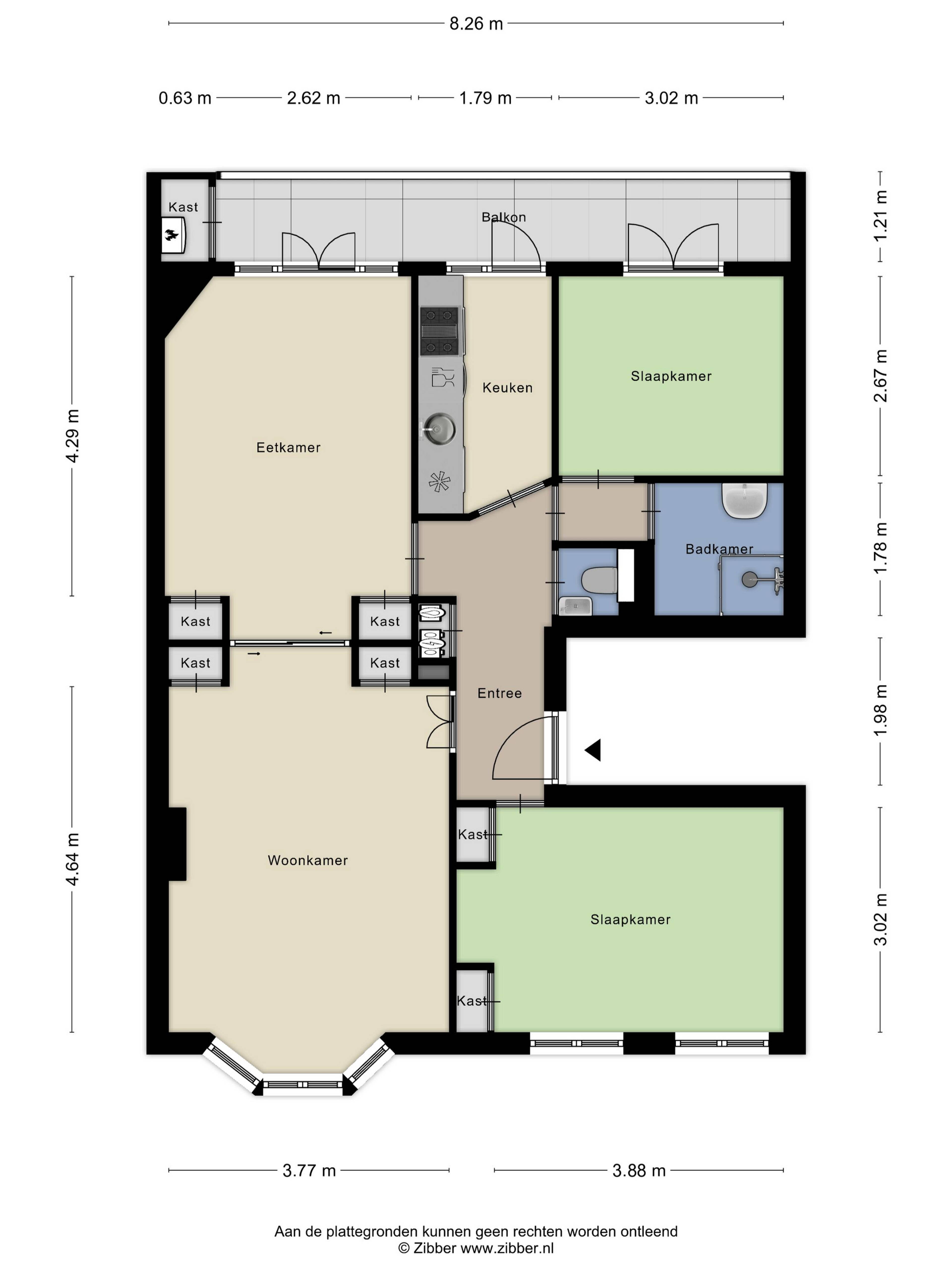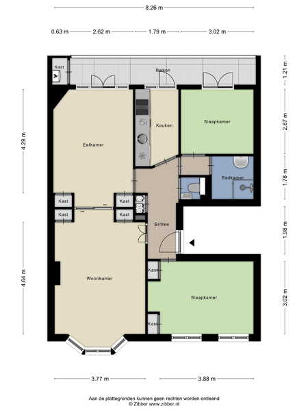 De slaapkamers zijn stuk voor stuk behoorlijk ruim en bieden plek voor een bed, kast en tafel. De achterste kamer geeft toegang tot het balkon. De grootste kamer aan de voorzijde is erg licht en kijkt uit op de straat. Verplaatst men de keuken naar de woonkamer dan zou er dus nog een tweede slaapkamer aan de achterzijde bij komen.