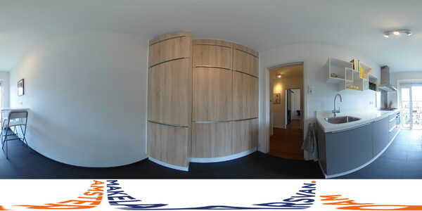 De keuken, volledig ingericht met veel kastruimte en een licht keukenblad, is voorzien van alle apparatuur zoals een vaatwasser, gaskookplaat, afzuigkap, inbouwoven en koel-/vriescombinatie. De keuken heeft een hoog tafeltje met stoelen waar lekker kan worden geborreld tijdens het koken.