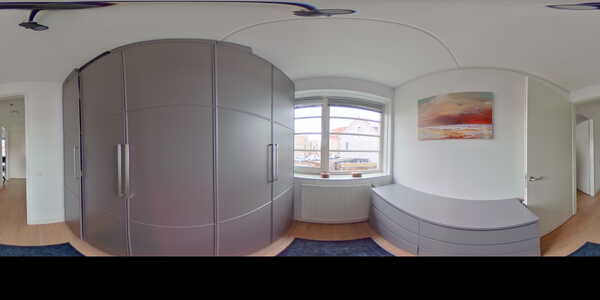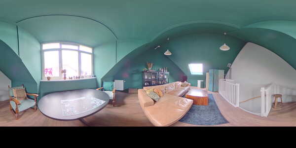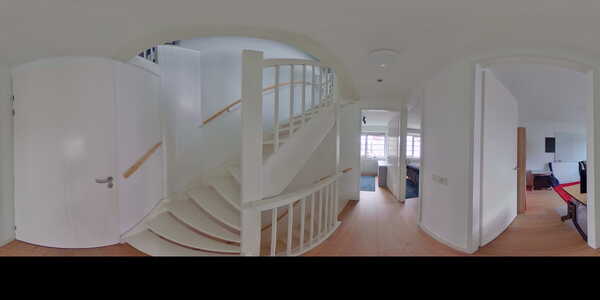 On the landing, that's where we start.From here, three bedrooms unfold, each bathed in light through the large windows.The parquet floor with high baseboards provides unity of style and class. To describe the bathroom as luxurious is not an overstatement. Modern light tiles, underfloor heating, walk-in rain shower and a stylish washbasin with a high cabinet. The present window provides that extra fresh air after a hot shower.