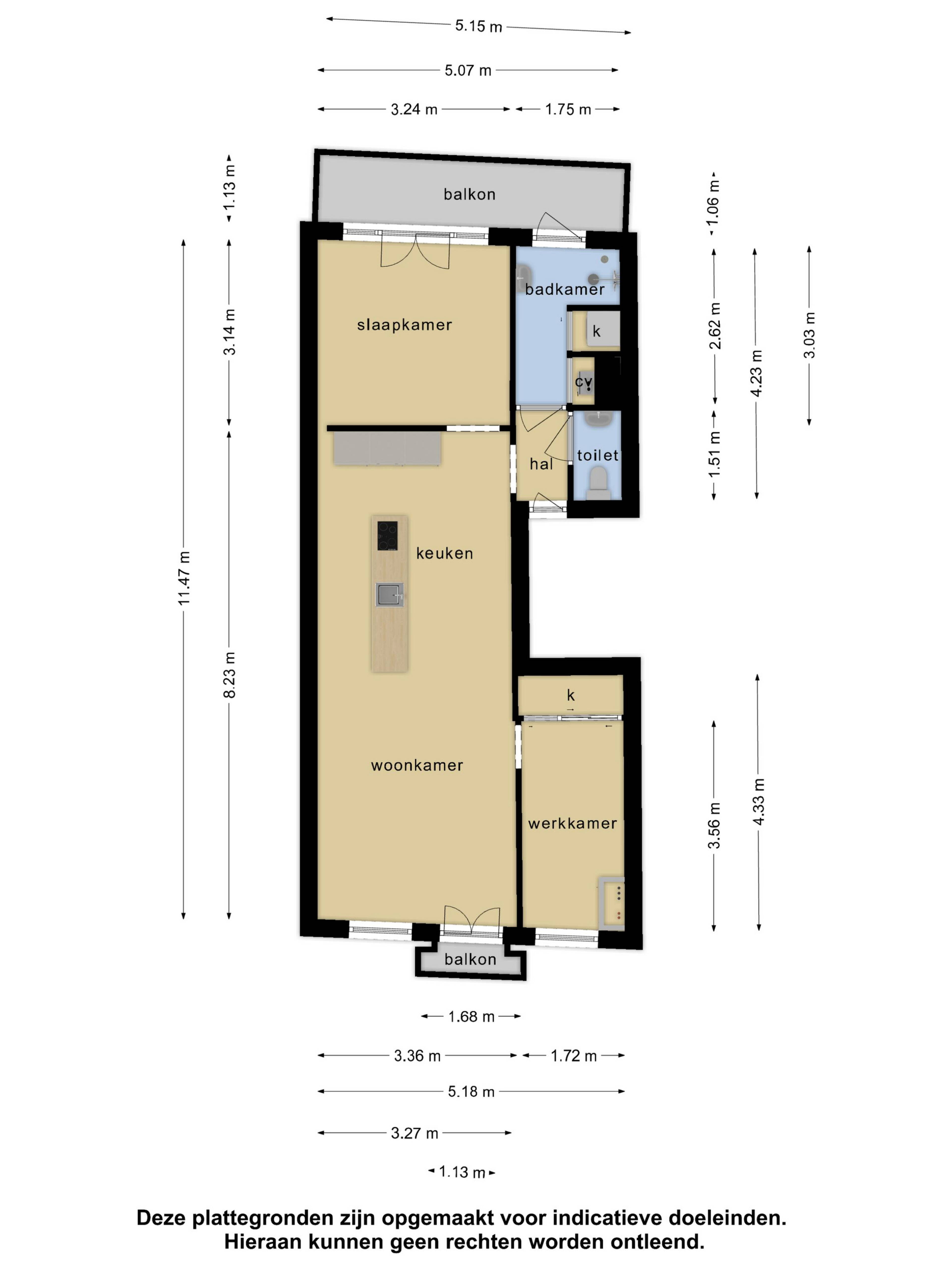 • Efficiënt ingericht 3-kamer appartement circa 53,4 m² groot;