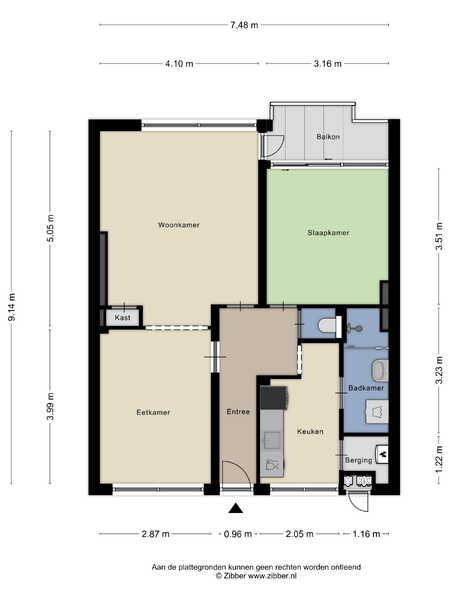 Een tweede slaapkamer is thans in gebruik als grote eetkamer, grenzend aan de woonkamer. Door middel van een eenvoudige ingreep is deze ruimte af te scheiden en te gebruiken als riante 2e slaapkamer. Deze 2e slaapkamer zal dan komen te liggen aan de oostzijde, grenzend aan de galerij. Beide slaapkamers zijn praktisch van gelijke grootte