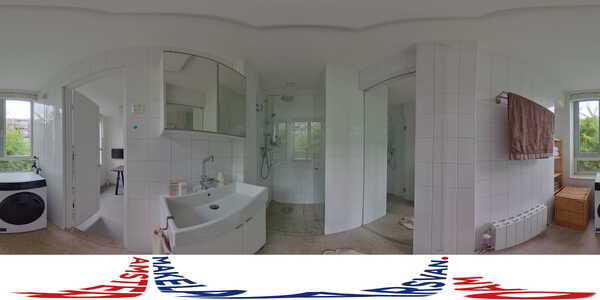 De ruime en lichte slaapkamer heeft een nette afwerking, een groot raam dat voor een aangename lichtinval zorgt, en de badkamer en suite. De badkamer heeft lichte wandtegels en een elegante terrazzovloer. Hier vind je een douche, wastafelmeubel en de witgoedaansluitingen. Ook deze ruimte is voorzien van een grote raampartij, wat zorgt voor veel natuurlijk licht.