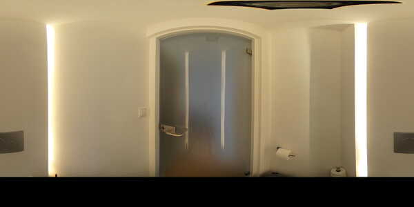 The dining room provides direct access to the modern toilet and the luxurious bathroom. If desired, the dining room can easily be converted into a second bedroom, as illustrated in the floor plans provided with the photos.