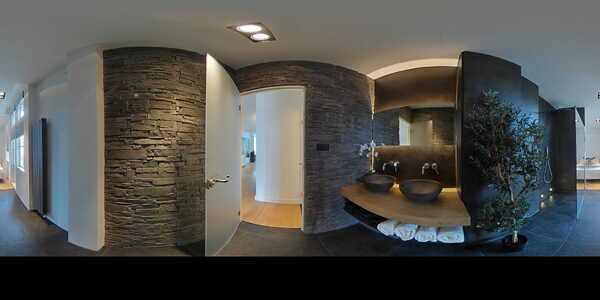 The cozy bedroom features a large window and a door to the balcony, giving the space a fresh and light atmosphere. This bedroom is directly connected to the en-suite bathroom. Here, you’ll find modern finishes, including a spacious walk-in rain shower, a vanity with dual sinks and integrated faucets, and a designer radiator.