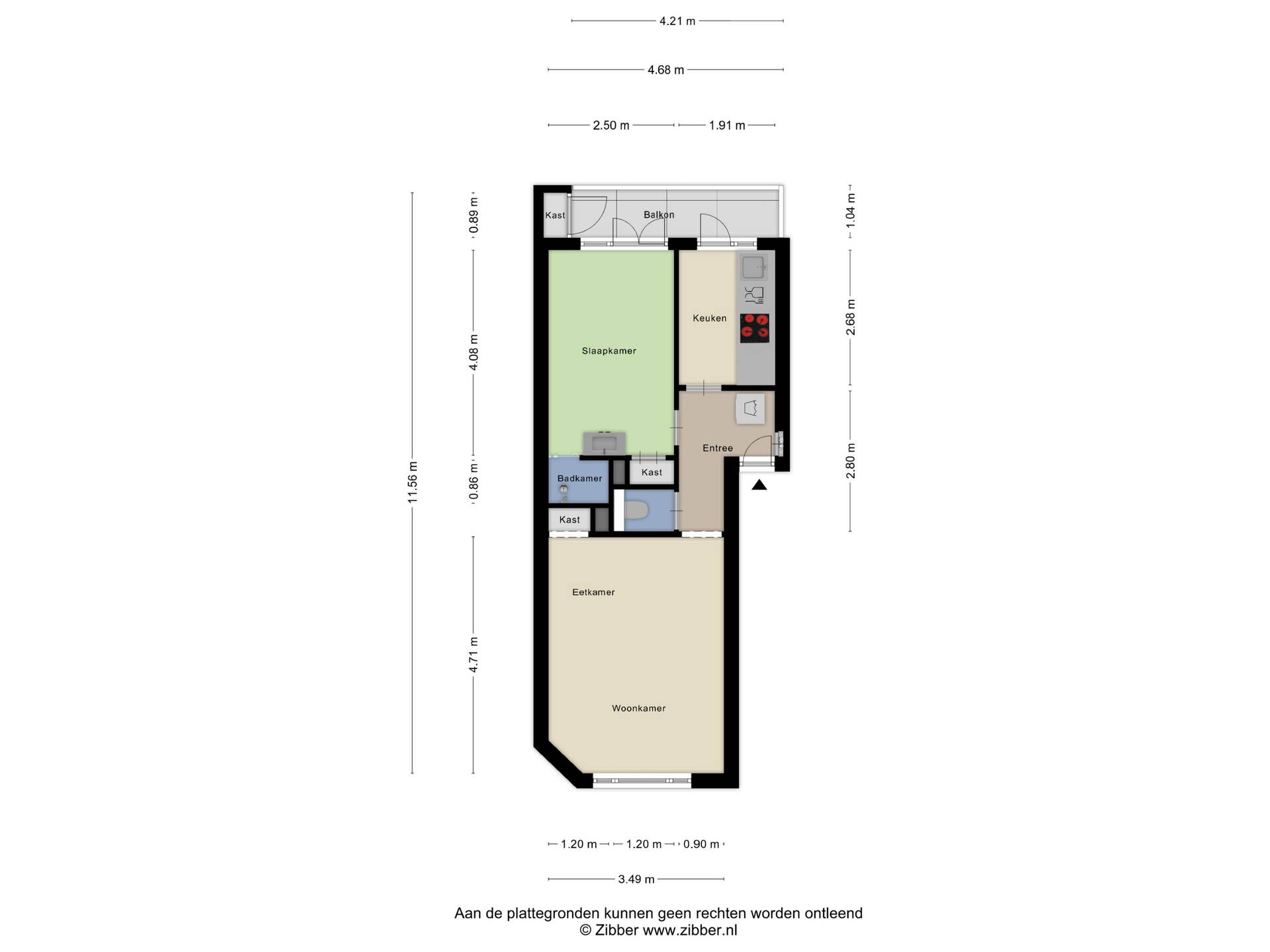 - Berging van 4,2 m² op de begane grond, binnendoor bereikbaar via interne trap