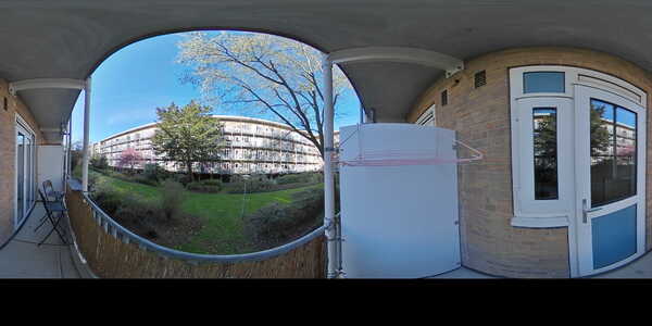 - Balkon op het westen met uitzicht op een goed onderhouden gemeenschappelijke binnentuin