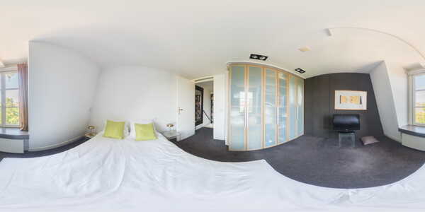 De vierde etage bereikt u, zoals eerder beschreven, vanuit de woonkamer middels vaste interne trap. Hier is een tweede ruime slaapkamer met kleine dakkapel en grote inloopkast. Verder nog een kamer die bijv. is te gebruiken als thuiskantoor. Vanuit hier zou een trap kunnen worden gemaakt naar het dak. De woning heeft geen dakterras. U dient als koper zelf navraag bij de gemeente/overheid te doen voor de mogelijkheden omtrent o.a. vergunning.