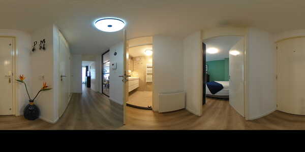 De luxe badkamer is voorzien van een dubbele wastafel, een inloop regendouche en een ingebouwd Bluetooth-geluidssysteem voor een ontspannen start van de dag. Daarnaast is er een apart toilet (state-of-the-art) én een eigen wasruimte met moderne AEG wasmachine en droger – beide inbegrepen.