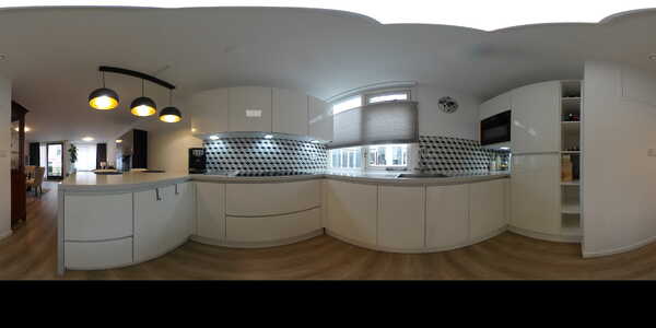 De moderne open keuken is een droom voor kookliefhebbers en uitgerust met luxe inbouwapparatuur van AEG, waaronder: