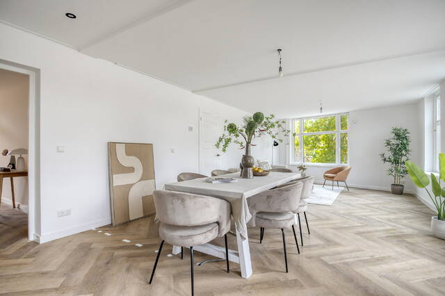 Met drie ruime slaapkamers is dit appartement perfect voor een jong gezin, een stel dat graag een thuiskantoor wil, of voor diegene die gewoon van veel leefruimte houdt. De woonkamer is royaal en licht, met hoge ramen die zorgen voor een natuurlijke flow van licht en lucht. De indeling voelt logisch en ruimtelijk, en maakt het makkelijk om je eigen sfeer neer te zetten.