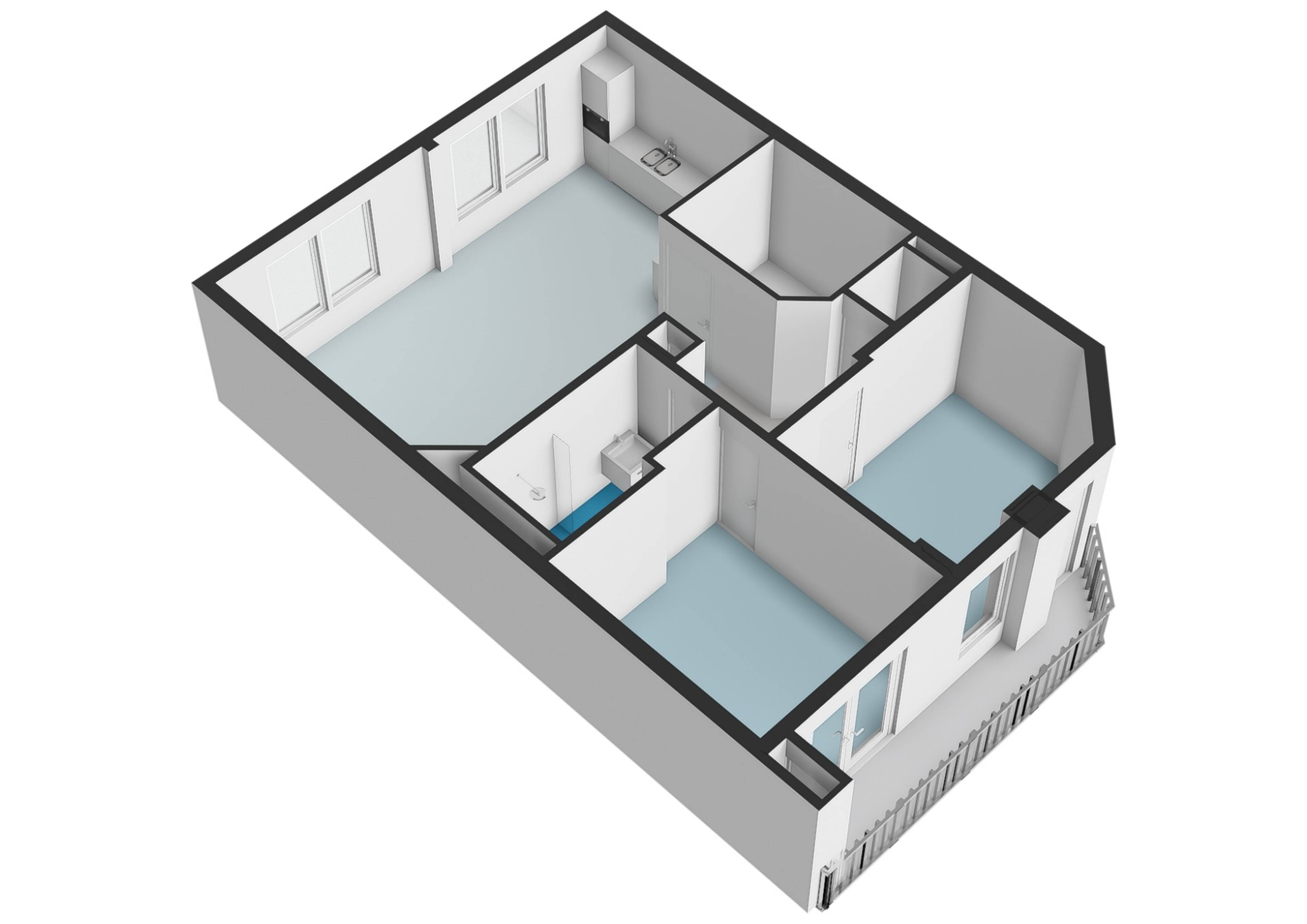 •Balkon over de volledige breedte van de woning, toegankelijk vanuit beide slaapkamers.