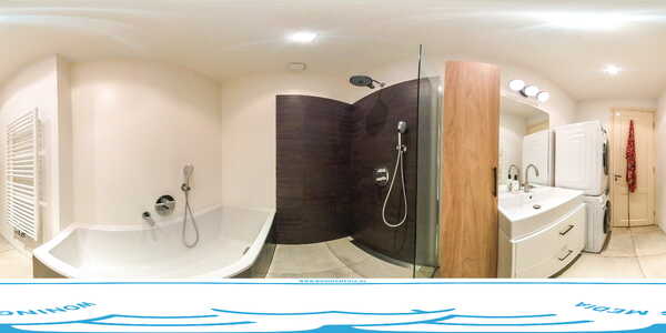 •Badkamer met ligbad, inloopdouche, wastafel én aansluiting voor wasmachine en droger.