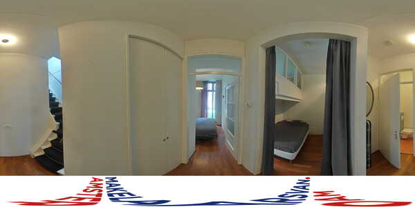 Via de 1e etage loopt men, via een gemeenschappelijk pad, het terras op. Ruime hal met toilet en ruime berging (o.a. CV en wasmachine). Deur naar eetkamer (potentieel 3e slaapkamer) met openslaande deuren naar het terras. Via de hal bereik je de ruime woonkamer voorzien van een moderne halfopen keuken en een heerlijk grote schuifpui die je bijna volledig kan openen. De keuken beschikt over een combimagnetron, vaatwasser, koelkast en een 5-pits gasfornuis. In de hal bevindt zich ook de trap naar beneden waar nog twee ruime slaapkamers en een inloopkast zijn. Een riante badkamer met ligbad, aparte douche, dubbele wastafel en een tweede toilet. De slaapkamers zijn gunstig gelegen, beide uitkijkend over en grenzend aan het Funenpark. Het appartement bevat tevens een privé berging in de kelder.