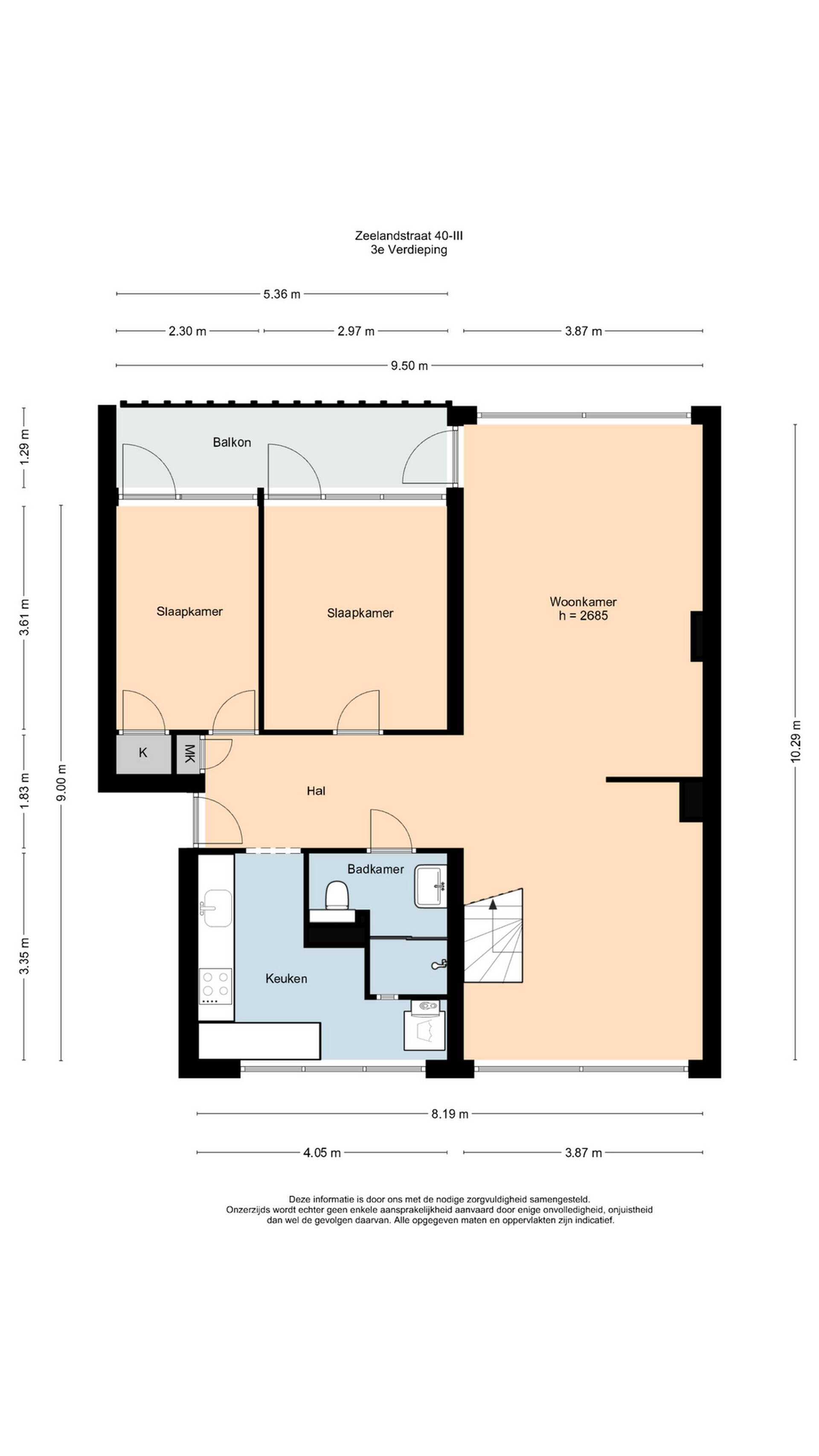 The apartment, approximately 113 m² in size, is located at Zeelandstraat 40 on the third floor