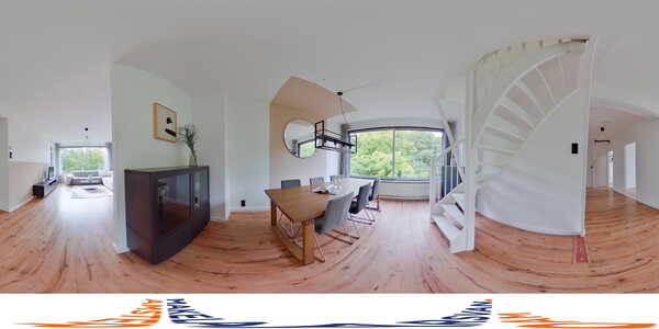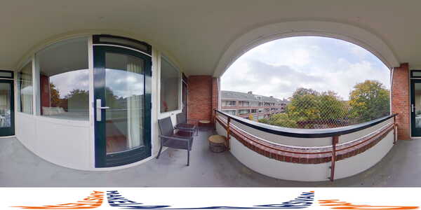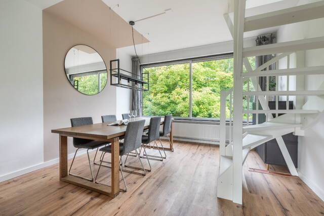 het balkon. Via de woonkamer is er een trap naar de tweede verdieping van het appartement,