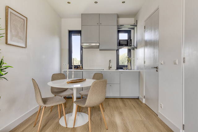 Stap binnen en ervaar de lichte en open sfeer. De studio is slim ingedeeld waardoor elke vierkante meter optimaal wordt benut. Vanuit de woonruimte loop je direct door naar het dakterras van zo’n 18 m² op het westen: een plek waar binnen en buiten naadloos in elkaar overlopen, perfect voor zwoele zomeravonden of ontspannen koffiemomenten in de avondzon.